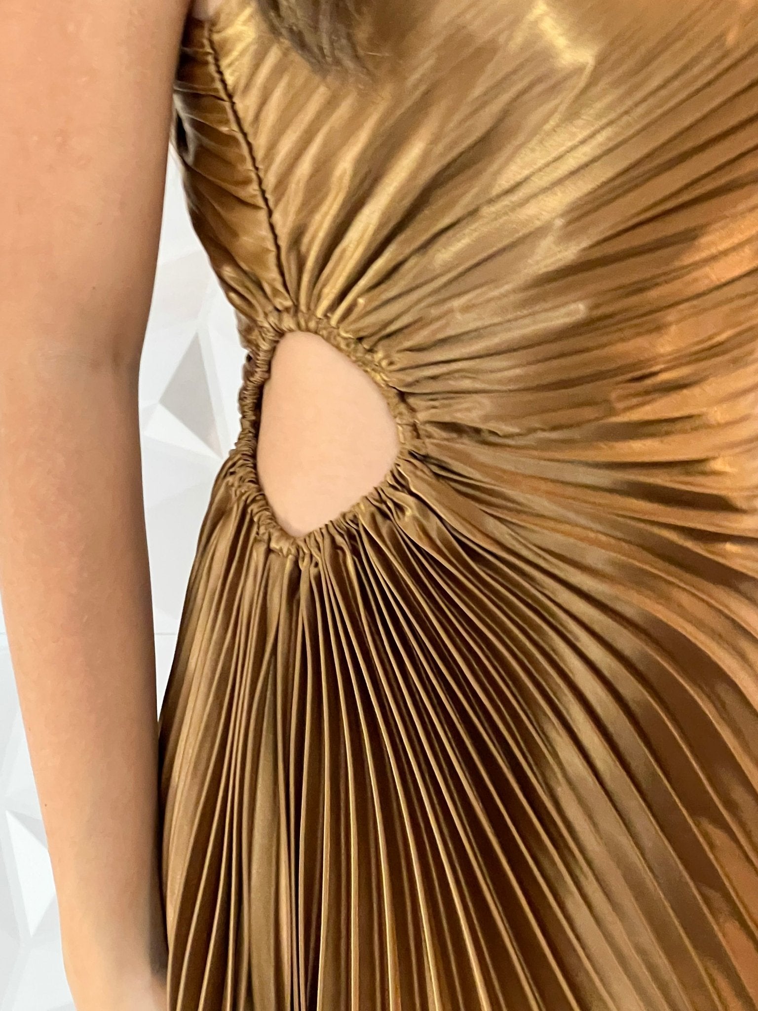 This one-shoulder Fandom Cutout Asymmetrical Dress is the perfect statement piece to bring your wardrobe to a golden goddess level! Its asymmetric hem and striking side cutout will draw stares and whispers, and you'll be the envy of everyone in the room! Wow 'em all in this special dress!