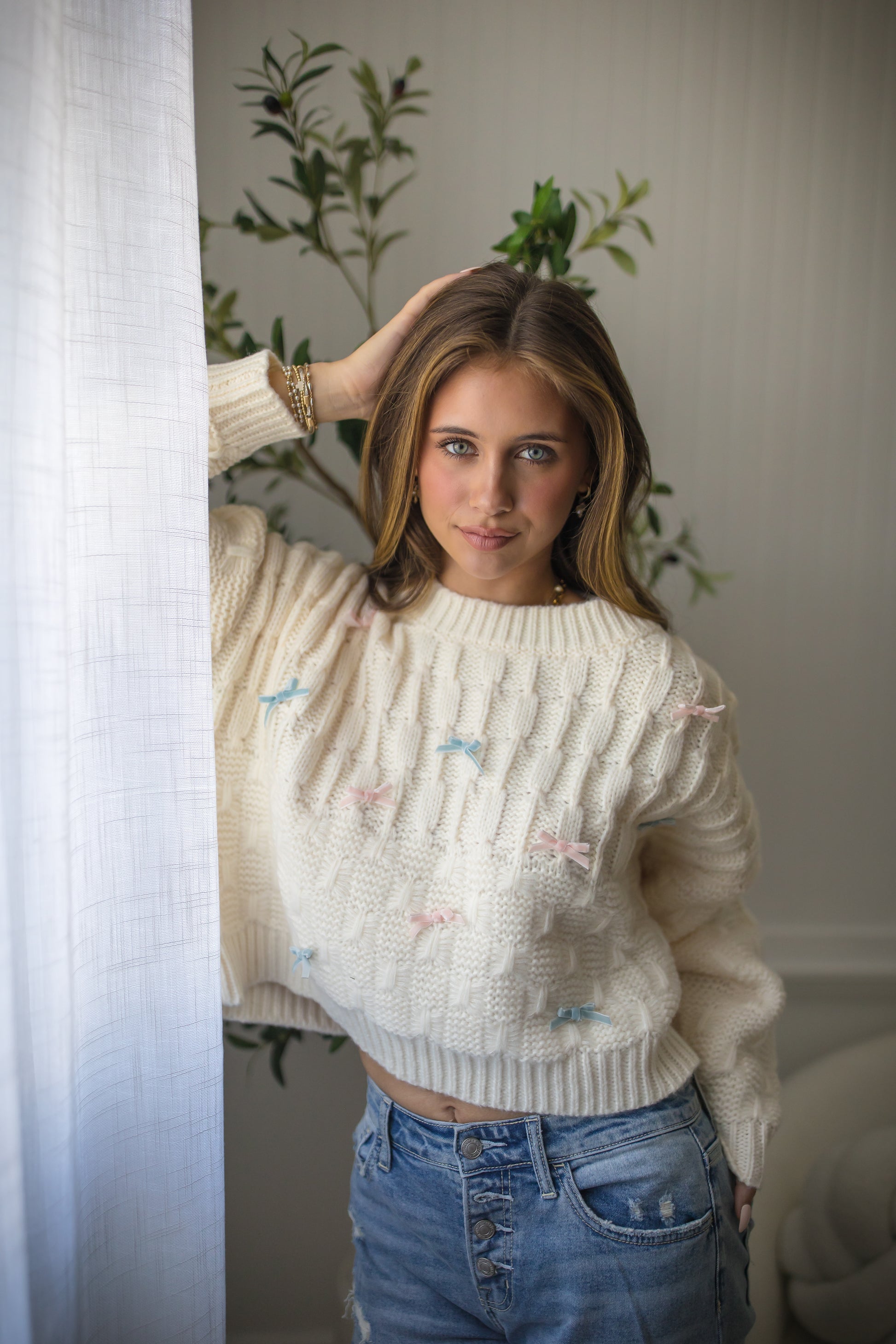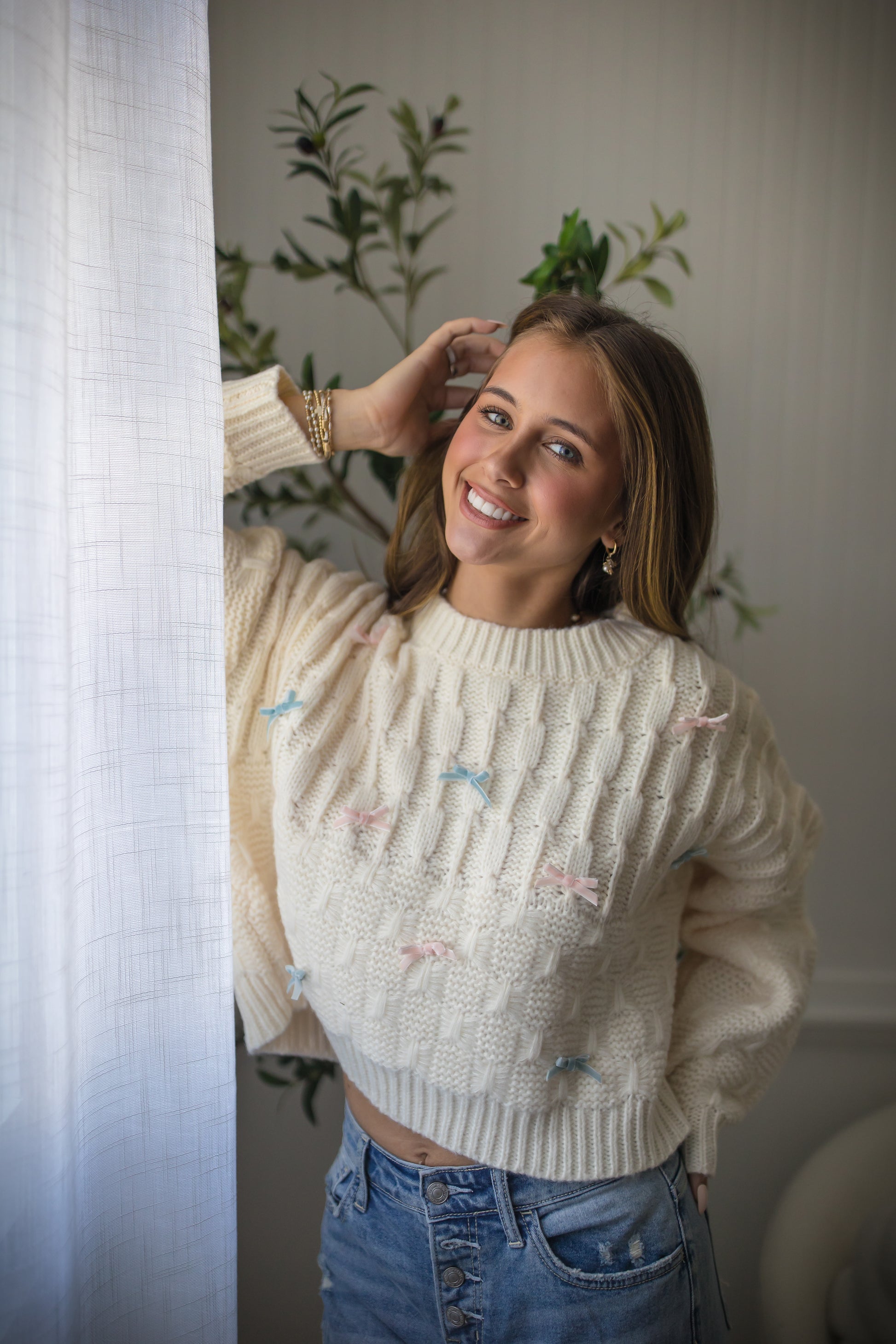 Cozy, confident and perfect for sweater weather! Our Madeline Sweater is the perfect mix of casual and perfectly accented with the sweetest bows!