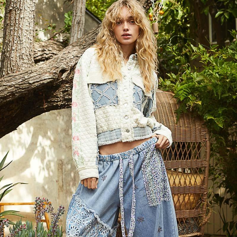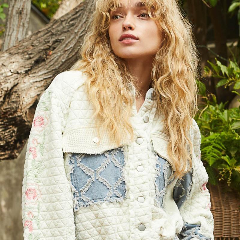 This mixed media moment we have here in Marietta, is simply stunning! Denim, embroidery detail, quilted fabric and even knit! It is so well made, comfy and a fun piece that you don't run across often!