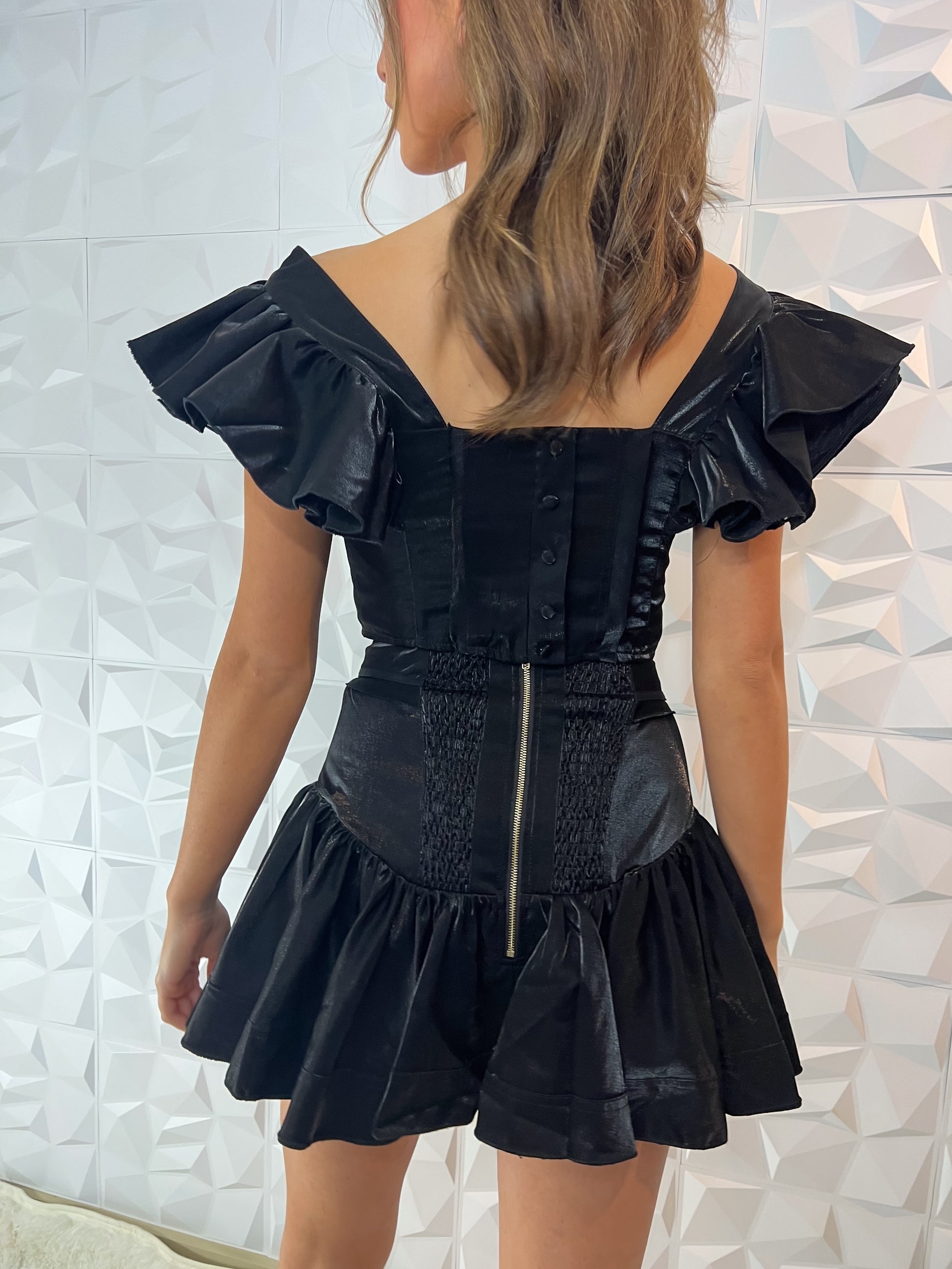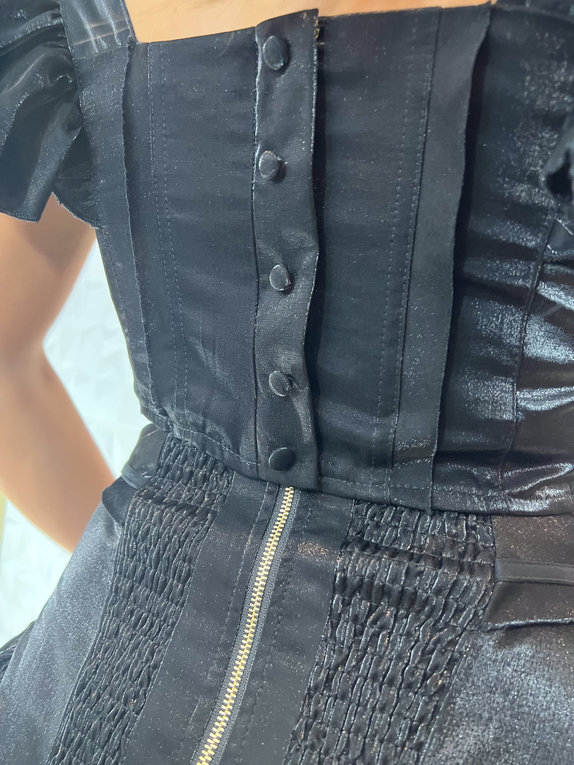 This is a STUNNING and DETAILED 2-piece set. Hidden back zipper on the top with button detail, ruffles that are perfect and smocked detail on the back panel of the skirt!