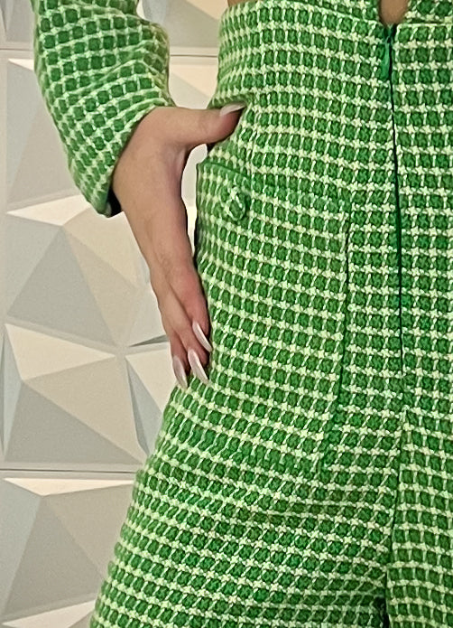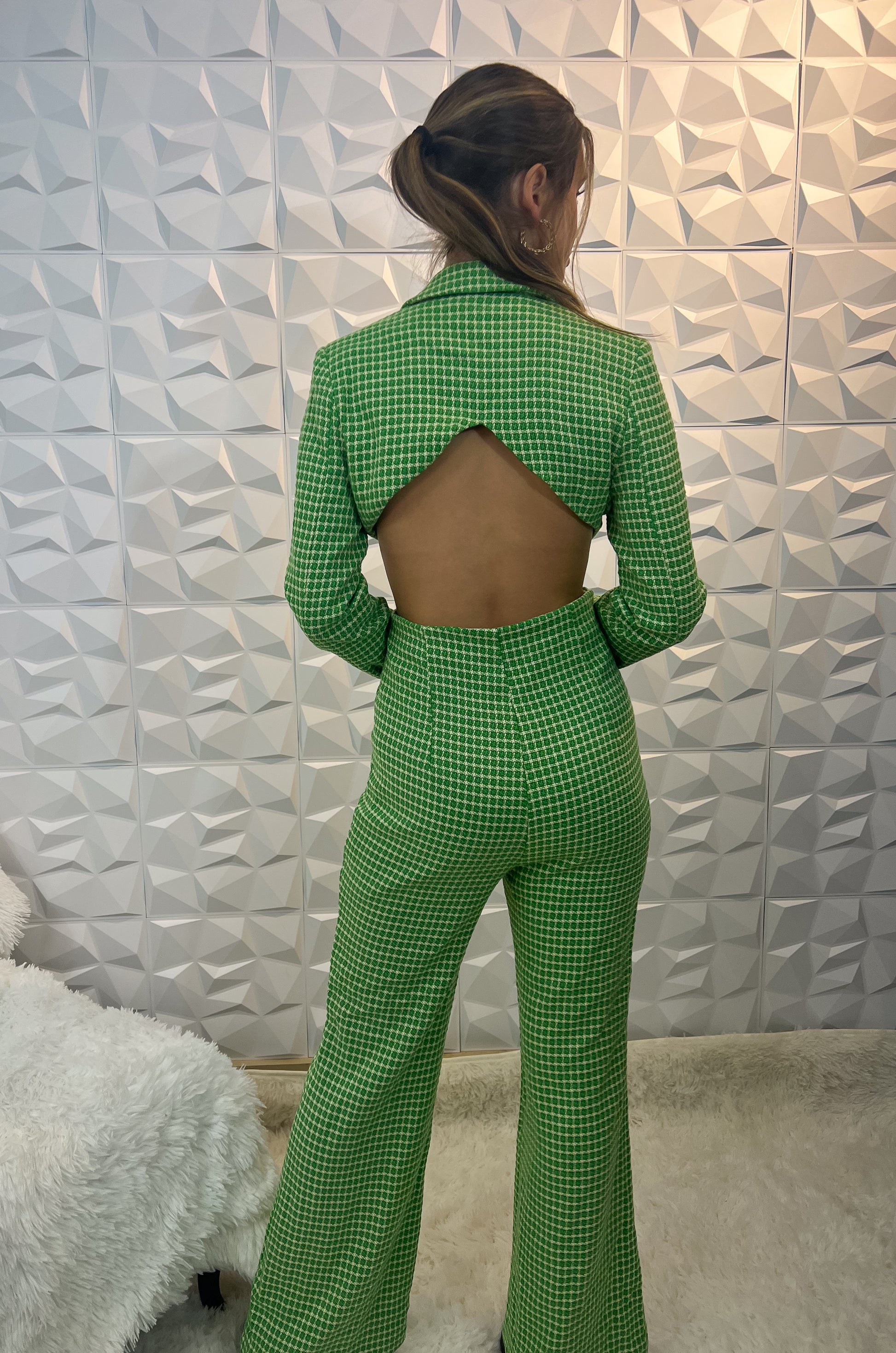 Verde Vera Jumpsuit is sure to make you stand out in the crowd! Featuring an amazing woven fabric and a stunning cutout back, this one-of-a-kind piece is lined and features a hood and eye closure in the front, as well as a stylish zipper.